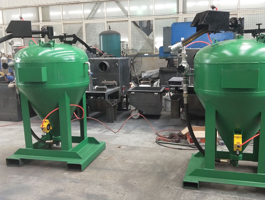 The working principle of the dust-free sandblasting machine (wet sandblasting tank) is the process of cleaning and roughening the surface of the substrate by the impact of high-speed sand flow. Using compressed air as the power, a mixture of water and sand is formed in the sandblasting tank, and then the spray material (glass sand is recommended) is sprayed to the surface of the workpiece at high speed by forming a high-speed jet beam. The impact and cutting action of the workpiece can remove the surface attachments of the workpiece, and at the same time make the cleaned workpiece relatively rough, increase the adhesion between it and the coating, extend the durability of the coating film, and also benefit the coating Leveling and decoration.